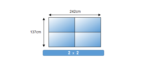 The final size of your Wall will be 242cm wide by 137cm high, which would be equivalent to a screen of 110 inches.